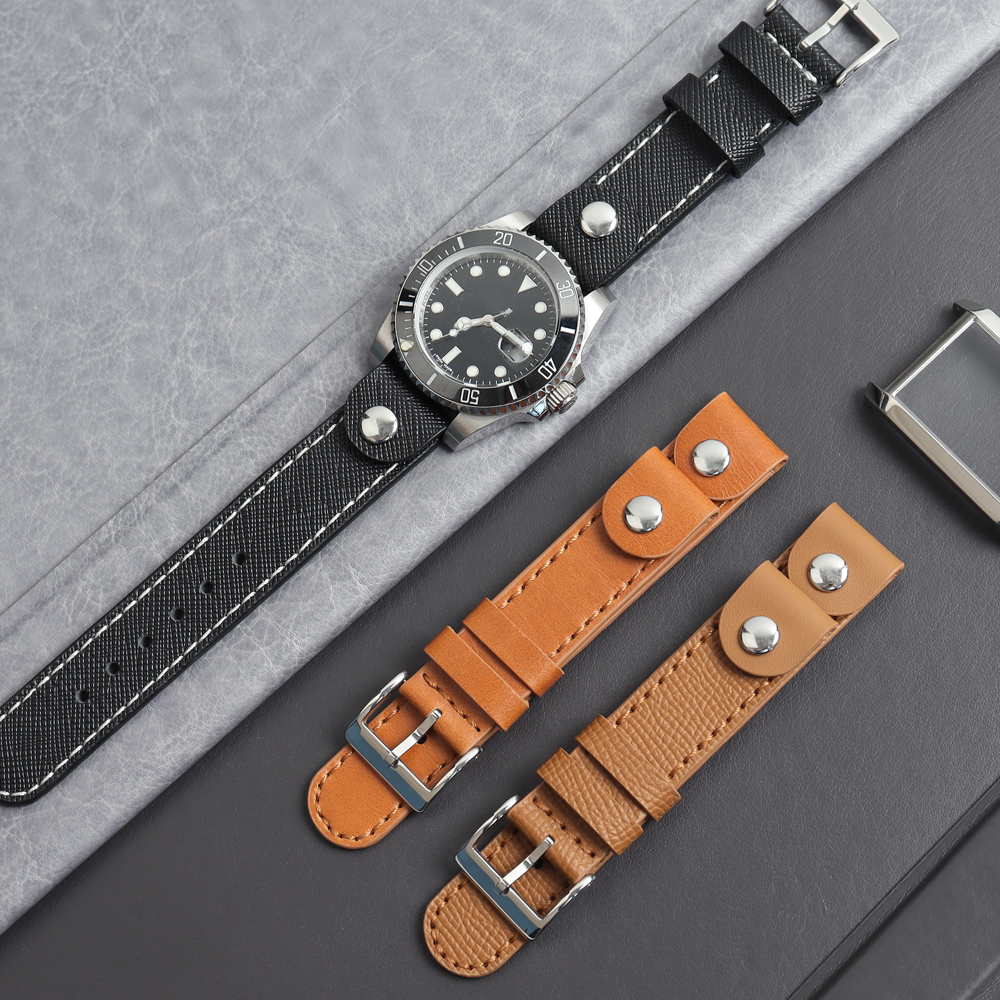 This style watch strap is use high quality leather material made, It is comfortable and soft to wear on your hands, will not hurt your hands, and is not easy to wear. Very suitable for matching diving sports watches. Also, Custom your design and your brand is available.